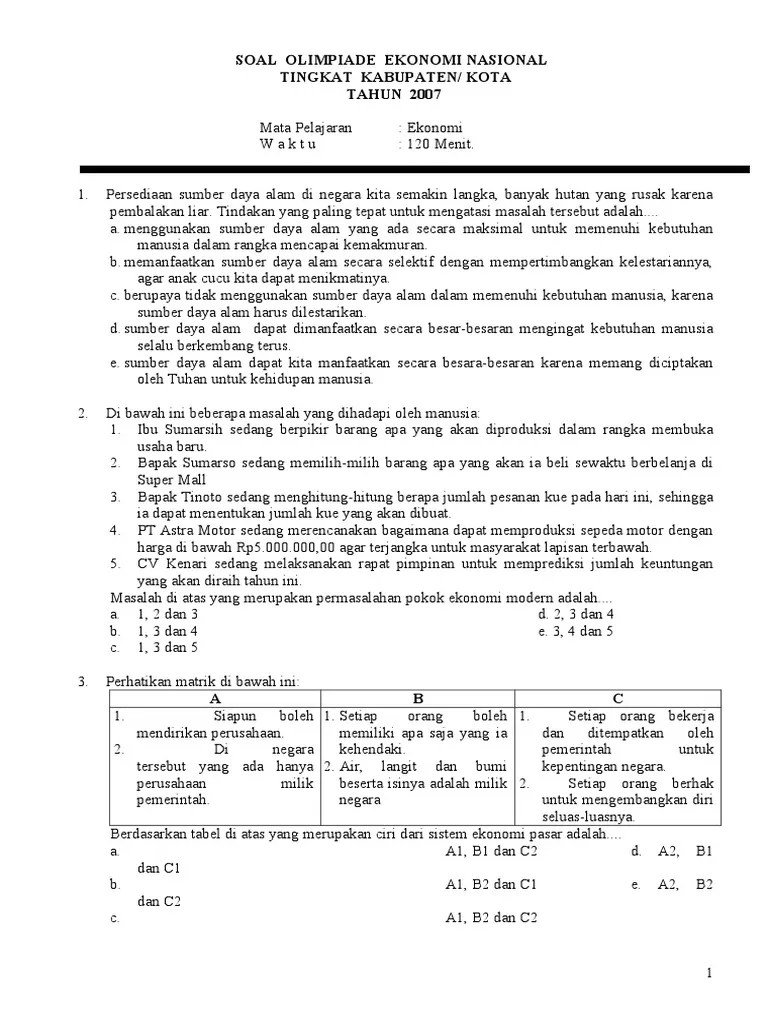 Soal osn sma bidang ekonomi kabupaten 2018;